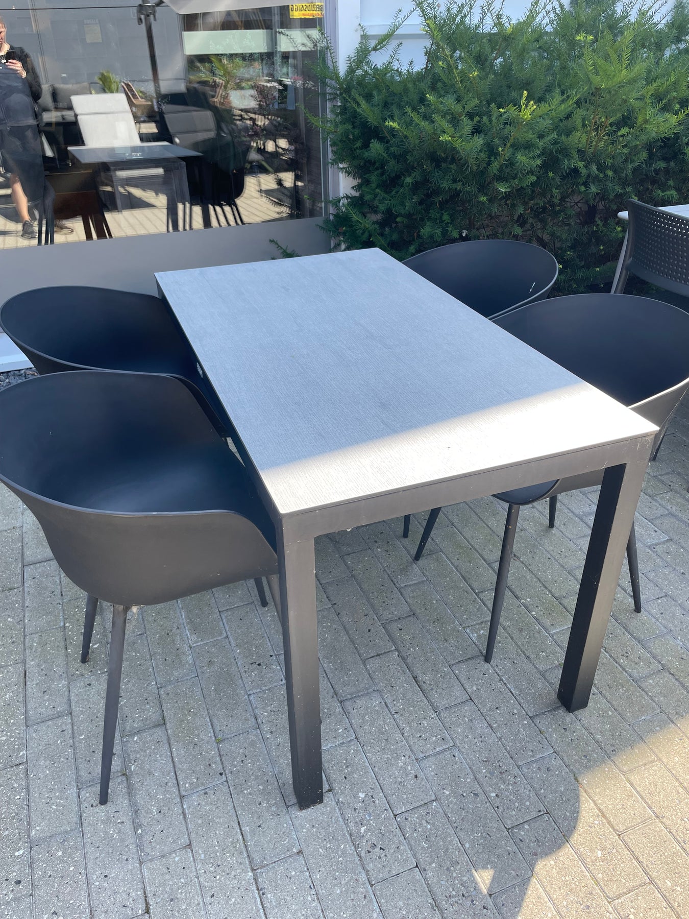 Dette smarte havesæt fra Brafab består af et praktisk havebord med robust laminatplade og pulverlakeret stel. De 4 tilhørende stole har en let og slidstærk plastskal kombineret med stabile metalben, hvilket giver både komfort og et moderne udtryk.