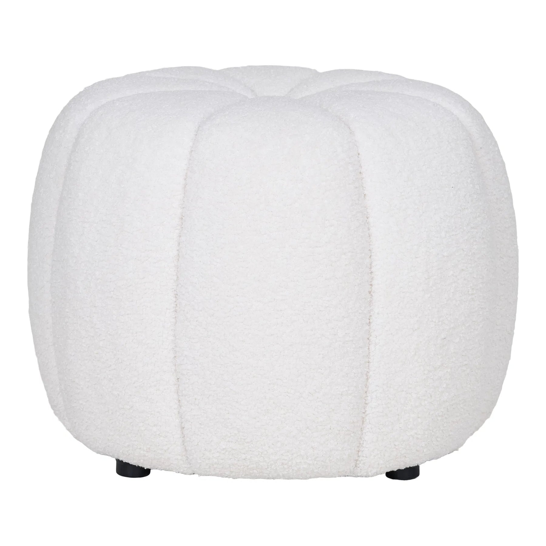 Dekorativ puf i rund form, monteret med blødt teddy-stof, der giver et indbydende og hyggeligt udtryk.
