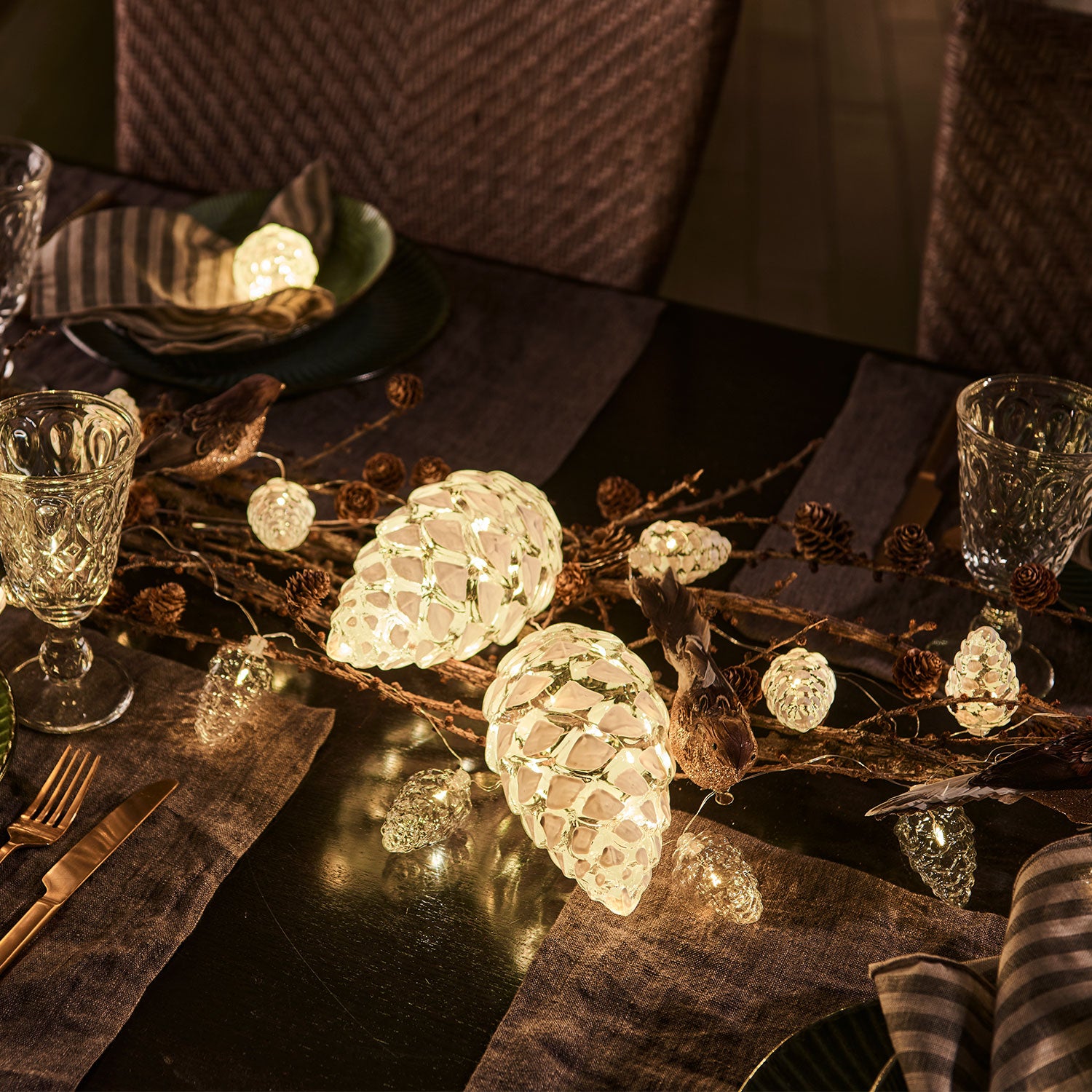 Med batteridrevet funktion (2 x AAA, medfølger ikke), er koglen nem at placere hvor som helst – hæng den på juletræet, i vinduet, eller brug den som en del af en dekorativ opsætning på bordet eller bakken. Celina-serien er skabt til at bringe hygge og naturens skønhed ind i dit hjem.