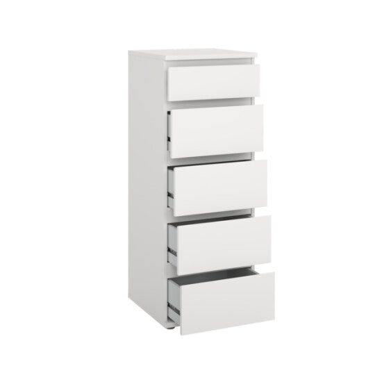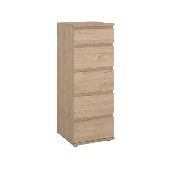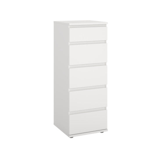 Smart og enkel kommode med 5 rummelige skuffer, som køre på kraftigt metal udtræk. Dansk produceret.