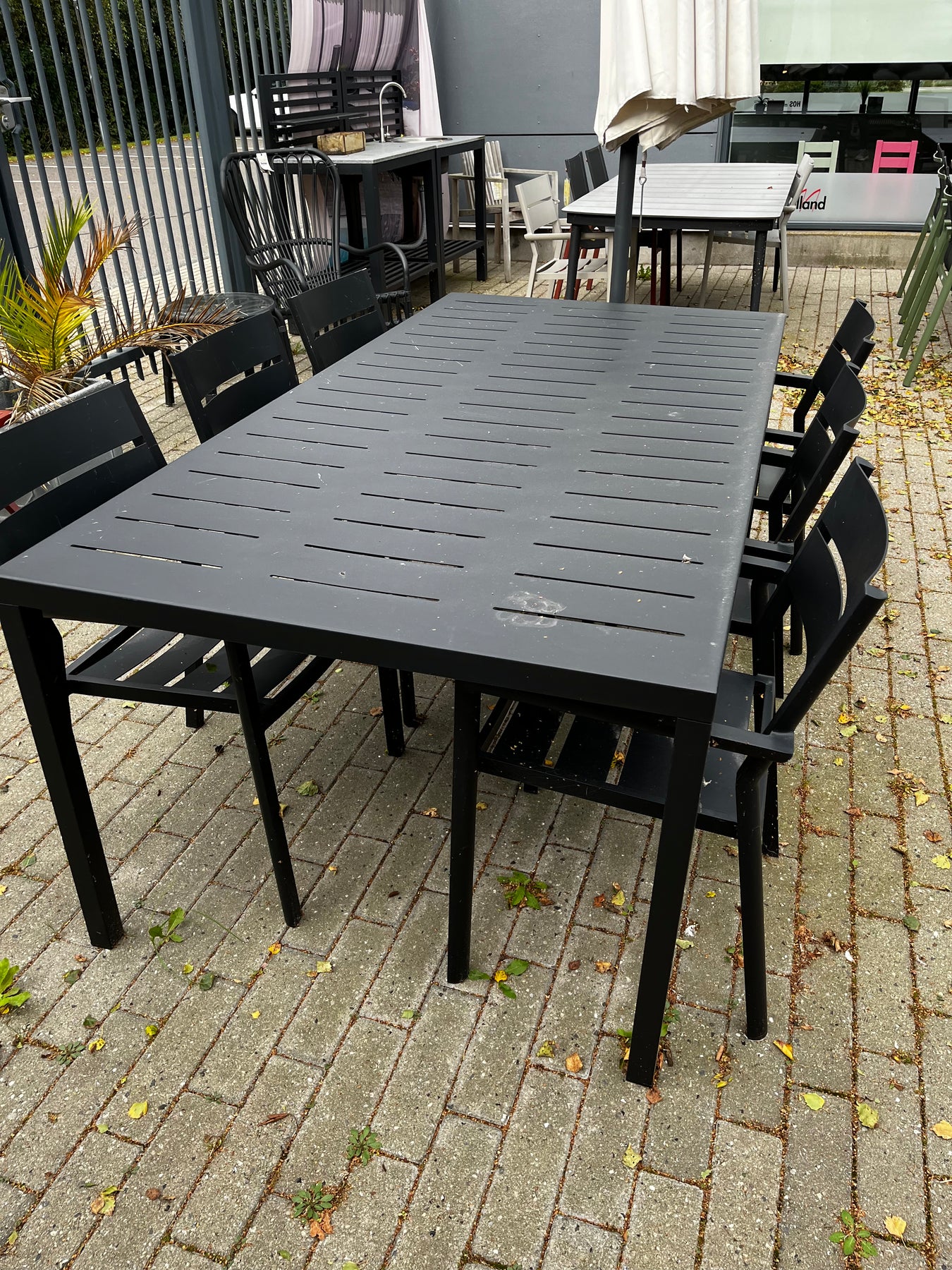Belfort havesæt kombinerer moderne design med holdbarhed og komfort. Sættet består af et bord og 6 Delia havestole, alle udført i robust sort metal, der sikrer lang levetid og nem vedligeholdelse.