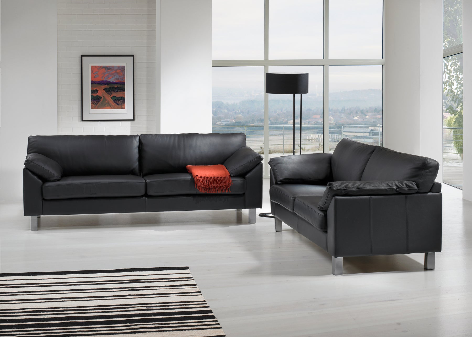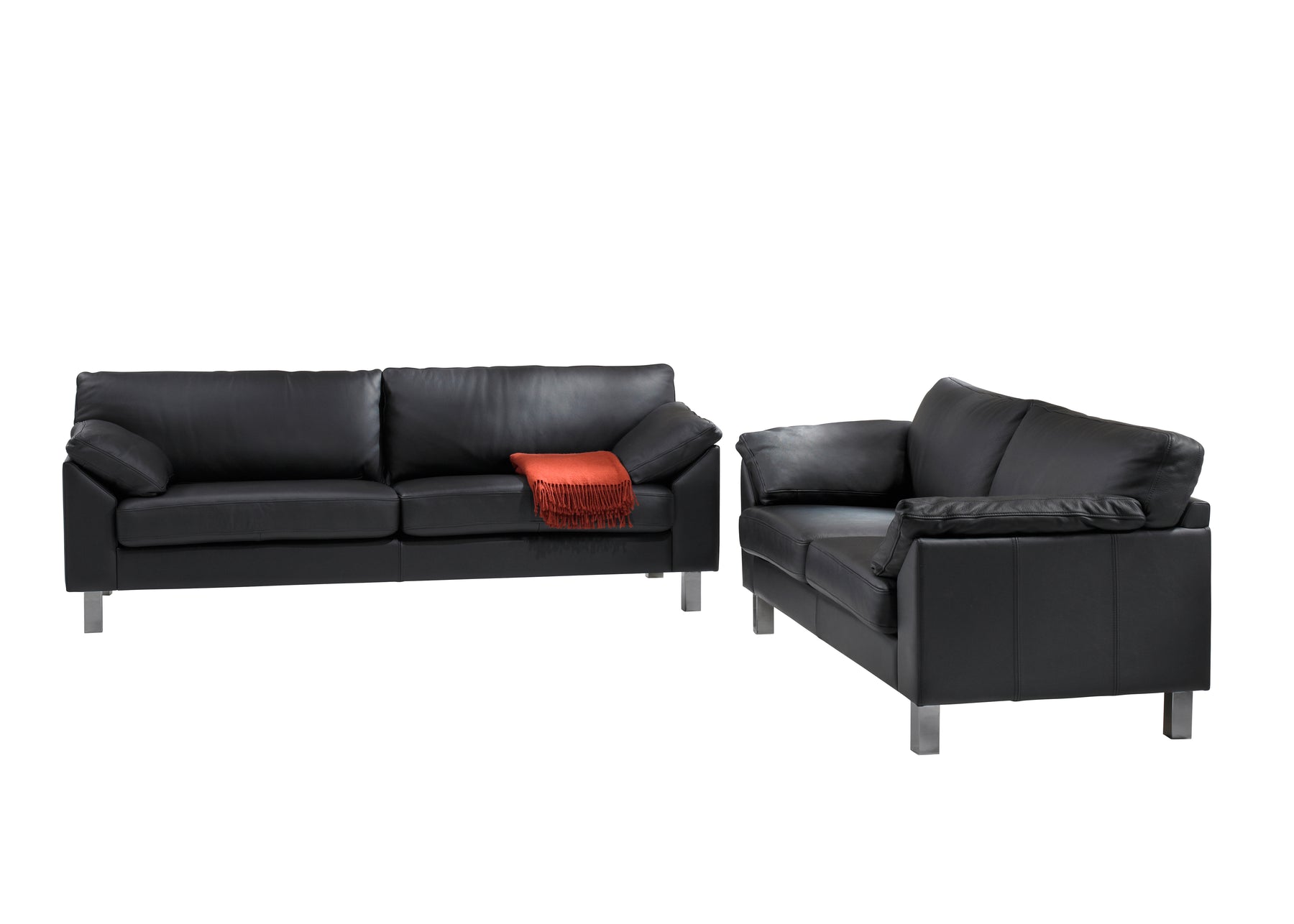 Michigan sofasættet består af en 3-personers og en 2½-personers sofa, monteret med ægte sort 52 okselæder, som giver et eksklusivt og tidløst udtryk. Det naturlige læder tilfører sofaerne karakter og patina over tid, mens de elegante metalben understreger det moderne design.