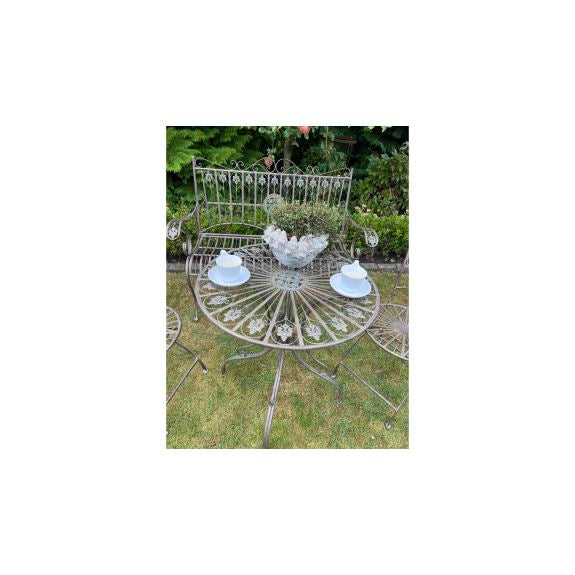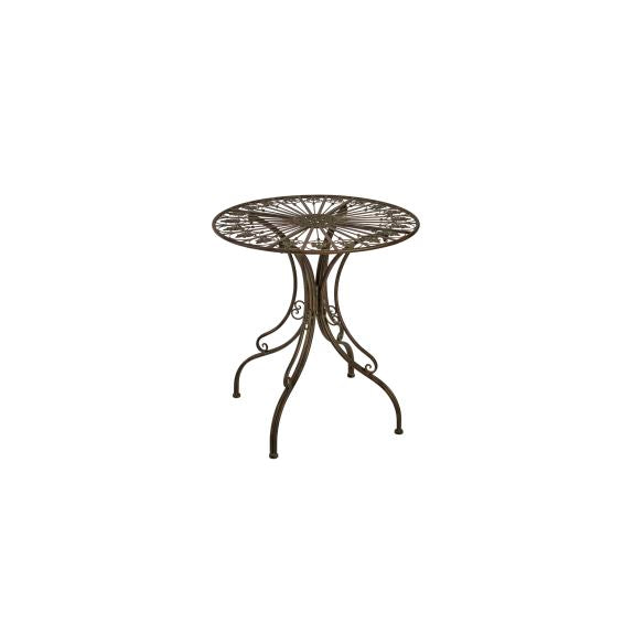 Skab en hyggelig og stemningsfuld atmosfære i haven eller på terrassen med dette elegante havebord i antik metal. Bordet er udført med fine, romantiske detaljer og en smuk patineret finish, der giver et klassisk og tidløst udtryk.