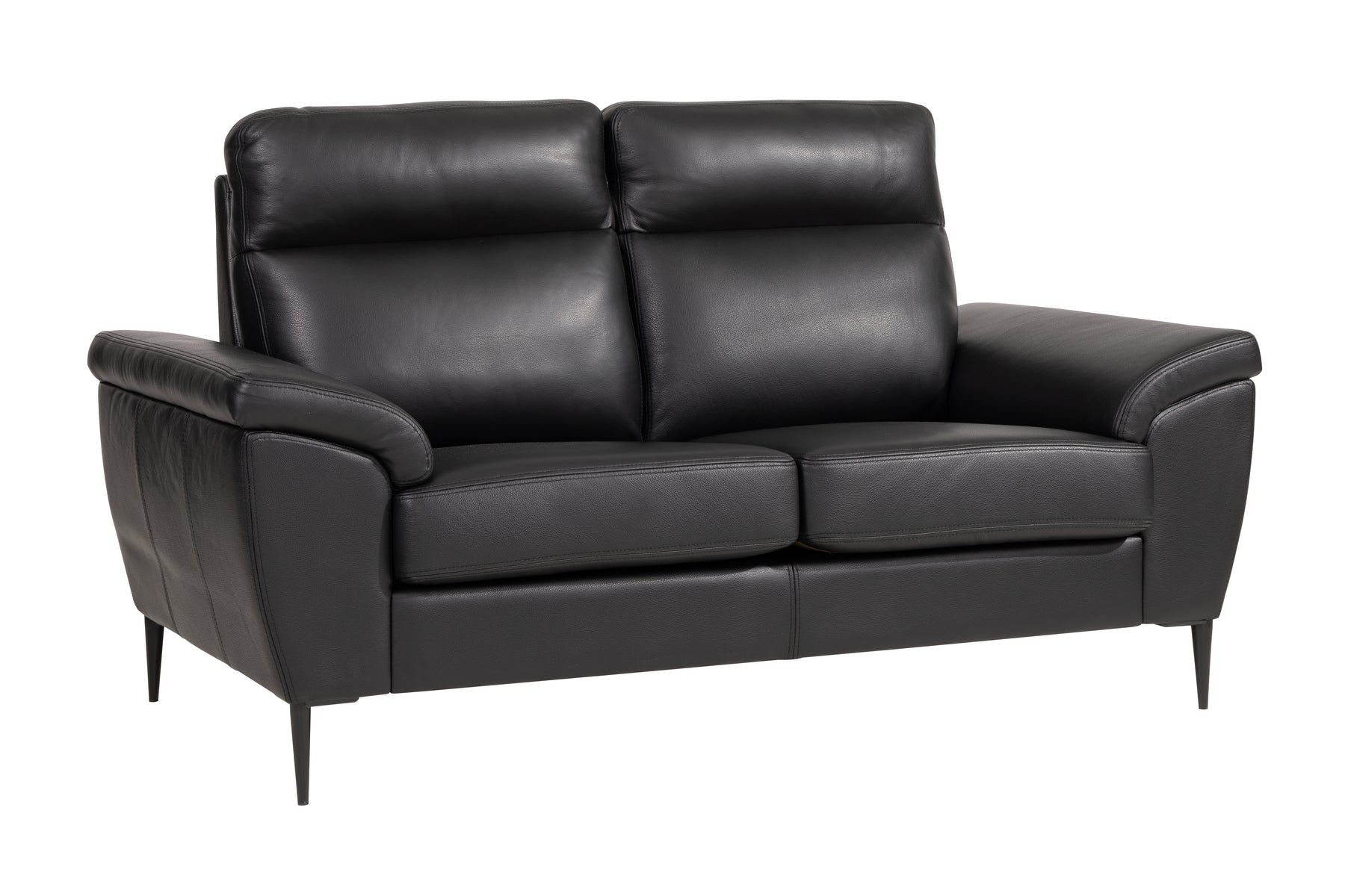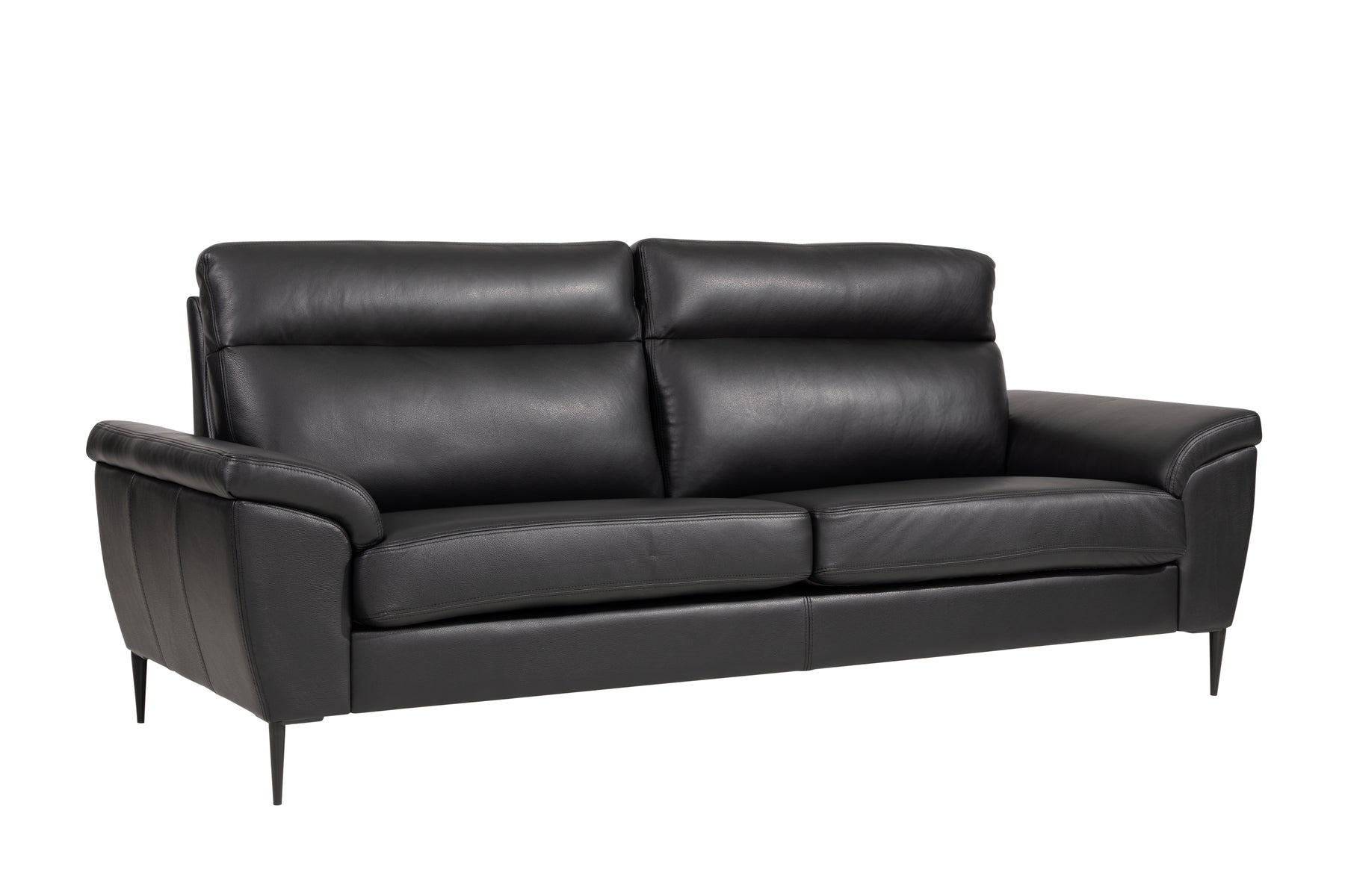 Eksklusiv og tidløs Alto sofa, betrukket med ægte sort okselæder (65 læder), der kun bliver smukkere med tiden. Sofaen står elegant på sorte træben og passer perfekt ind i både moderne og klassiske hjem.